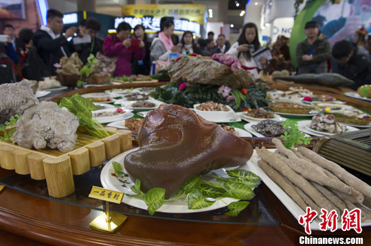 10月31日,来自新疆的奇石宴亮相第九届北京金博会,其中一款名为“一品香肘”的奇石尤为形似,作为投资新品种的奇石吸引了不少观众的目光。中新社发 崔楠 摄