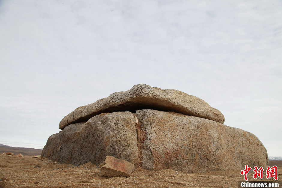 距离新疆阿勒泰地区哈巴河县城30公里处的千年古石棺墓群,据考古专家分析,距今约4000年左右。这些石棺墓有的彩绘图案雕刻精细;有的墓建造简单,用几块石头堆砌而成。入葬时间也相对接近,特别是古墓的建筑及用材让人深思,古墓周围几十公里都是丘陵地带,连一块大一点的完整石头都很难见到,可这些古墓全以石材为主,有几个大石棺墓中的碑石重达几千公斤,古时候生产工具落后,交通闭塞,这些巨石是从哪里运来的,古人是怎么加工的,到目前还是一个未解之谜。图为11月12日拍摄的历经千年风雨的古墓。刘是何 摄
