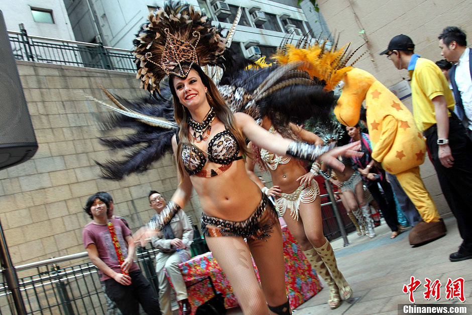 11月13日,香港兰桂坊主席盛智文与艺人锺舒漫、傅嘉莉、张敏洁等一众表演团体嘉宾出席“兰桂坊嘉年华2013”开幕式。全港最大型的户外派对“兰桂坊嘉年华”将在11月23日至24日举行,主题将注入“香港狂热”新元素,让游客感受地道气氛。中新社发 洪少葵 摄