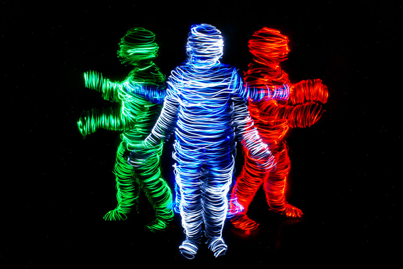 大多数艺术家都是通过画笔在画布上作画,但是Janne Parviainen却有些与众不同。为了创造自己的魔幻肖像,这位芬兰艺术家选择用光线作画,并且不经过任何的数字化后期处理。他延长了曝光时间,并通过移动摄像机框架内特定的光线进行绘画创作。他将绘画和摄影完美地结合在了一起,经过他的移动,那些神秘人物从黑暗中以螺旋形光束的形式呈现。