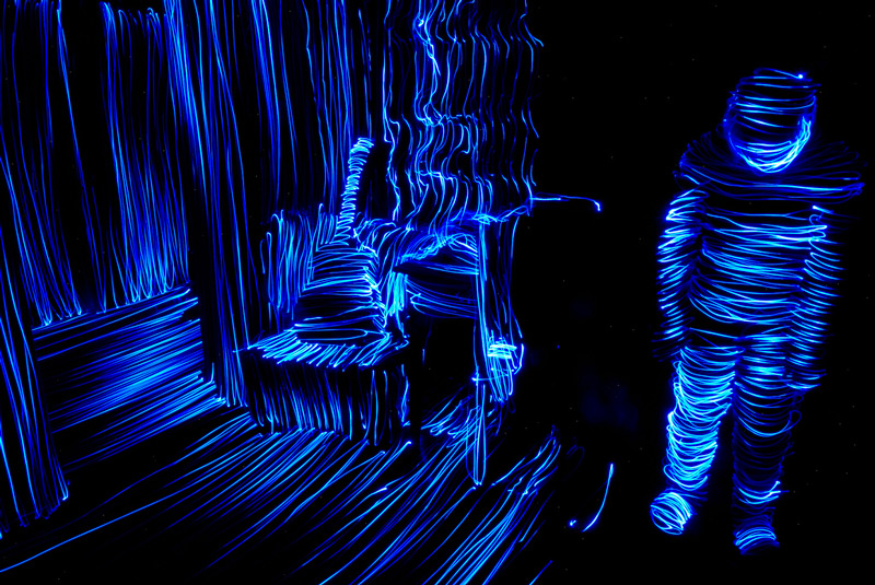 大多数艺术家都是通过画笔在画布上作画,但是Janne Parviainen却有些与众不同。为了创造自己的魔幻肖像,这位芬兰艺术家选择用光线作画,并且不经过任何的数字化后期处理。他延长了曝光时间,并通过移动摄像机框架内特定的光线进行绘画创作。他将绘画和摄影完美地结合在了一起,经过他的移动,那些神秘人物从黑暗中以螺旋形光束的形式呈现。