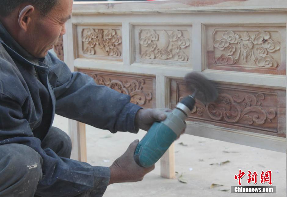 图为工人正在打磨木料。刘玉桃 摄