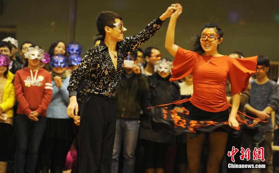 11月30日晚,兰州大学研究生院的学生们头戴面具尽情歌舞,燃烧青春激情,释放情感压力。这是兰州大学举行的“不愿让你一个人”大型假面交友舞会,旨在提供情感交流平台,释放同学情感压力,营造娱乐交友氛围,活跃校园情感文化。中新社发 杨艳敏 摄
