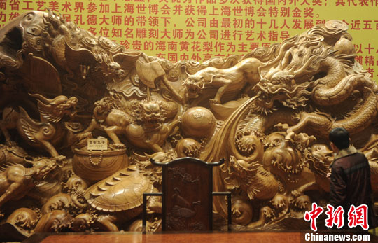 12月2日,标价为1700万元人民币,名为“龙生九子”雕塑亮相重庆万石博览会。博览会现场,该雕塑标签上写有“龙生九子、材质为千年老樟树”。陈超 摄