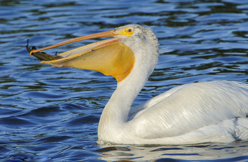 鹈鹕伸巨嘴倒霉鲶鱼恰"落网"