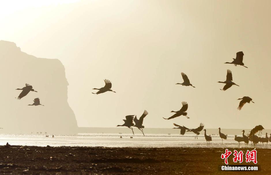 全世界现生存鹤科鸟类15种,黑颈鹤是其中发现最晚的一种。黑颈鹤是青藏高原特种物种之一,国家一级保护动物。图为10日,拉萨市林周县虎头山水库内拍摄到的黑颈鹤。李林 摄