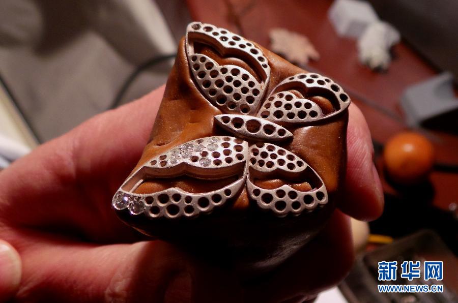 12月12日,法国著名珠宝品牌“梵克雅宝”的珠宝工匠在现场展示珠宝设计制作工艺流程。当日,“金手匠心至臻之艺”梵克雅宝年度高级珠宝展在北京开展。70件设计独具匠心,制作精美绝伦的珠宝饰品与观众见面。 新华社记者 李明放 摄