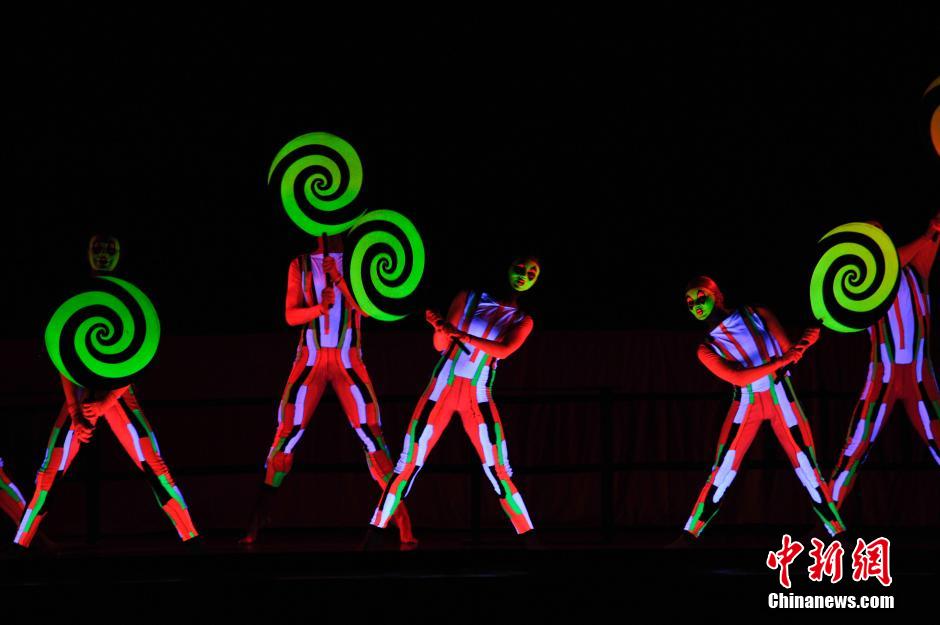 12月12日晚,美国爱文·尼可拉斯现代舞团将《爱文·尼可拉斯经典集萃》带到昆明观众眼前。爱文·尼可拉斯是世界现代舞界的大师级创始者之一,舞蹈强调视觉冲突和道具运用,各式物料、颜色、线条的夸张表现,以荒诞主义的形式震撼人心。中新社发 刘冉阳 摄