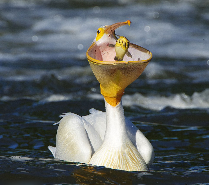 59岁的约翰是一名软件工程师,当日,他碰巧目睹并拍摄了这一幕。鱼儿们游过大坝之后受惊跳起,使得鹈鹕捕食更为方便。鹈鹕将这条鲶鱼反复抛起,直到其以合适的姿势落入嘴中。鹈鹕不是用喉囊储存鱼,而是立即把鱼吞下。而鹈鹕喂养幼雏时,幼雏将嘴伸进亲鸟的食道取食父母回吐的食物。