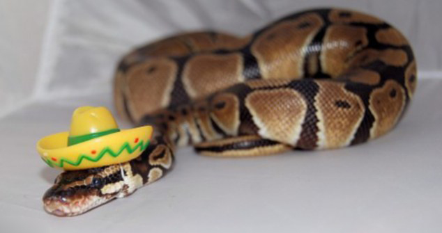 这是继配有幽默文字的猫组图和“法官”哈巴狗疯传网络后的最新动物图组,在互联网上大受欢迎。此前风靡网络的是可爱小猫和拉布拉多幼犬,这次却是头戴稀奇古怪帽子的爬行动物蛇。