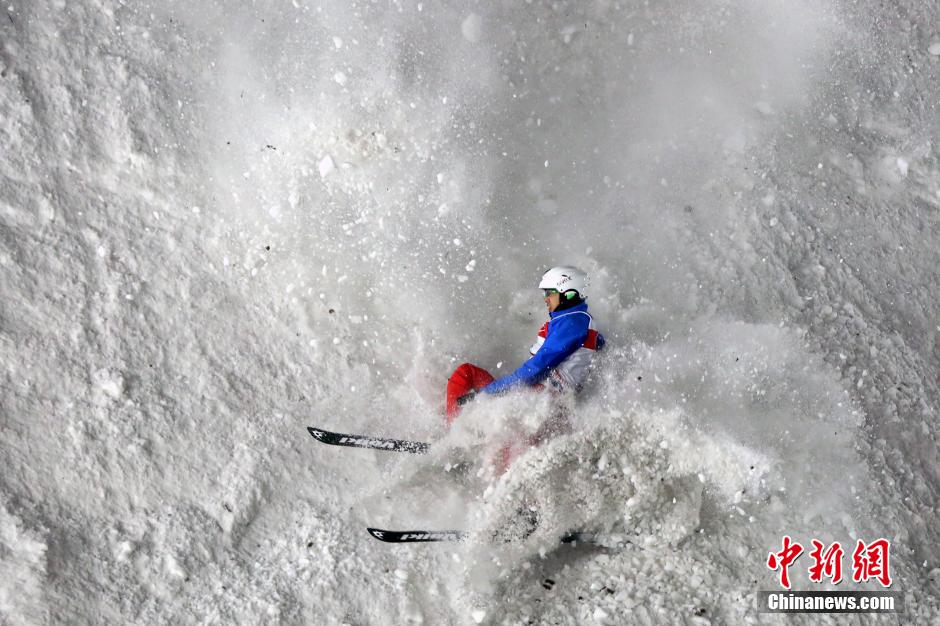 12月22日,中国选手刘忠庆在比赛中落地时摔倒无缘决赛。当日,当日,2013-2014国际雪联自由式滑雪空中技巧世界杯北京站第二个比赛日在“鸟巢”举行。在男子组比赛中,加拿大选手特拉维斯以126.70分的成绩获得冠军。中新社发 韩海丹 摄