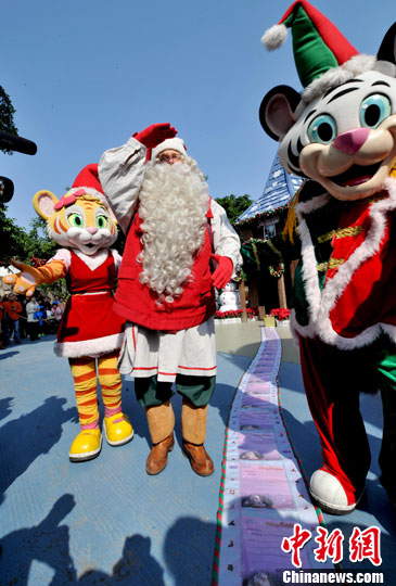 12月22日,一封长达800米的圣诞信在广州长隆欢乐世界亮相。中新社发 刘卫勇 摄
