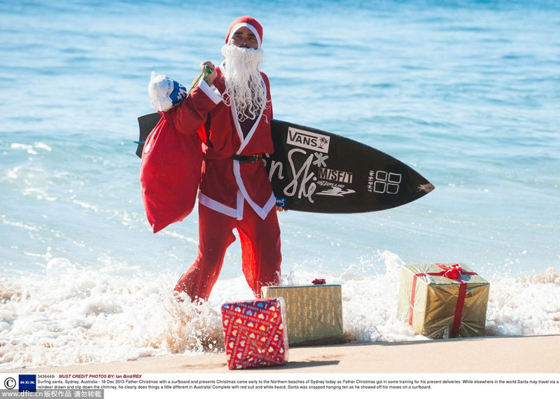 印象中的圣诞老人,总是驾着他的鹿车从天而降,为小朋友们送上节日的礼物。曾几何时,鹿车不再是他唯一的交通工具,圣诞老人的座驾也开始花样百出。乘飞机、挤巴士、骑大象、泛小舟……圣诞老人海陆空兵分三路给人们带来惊喜。