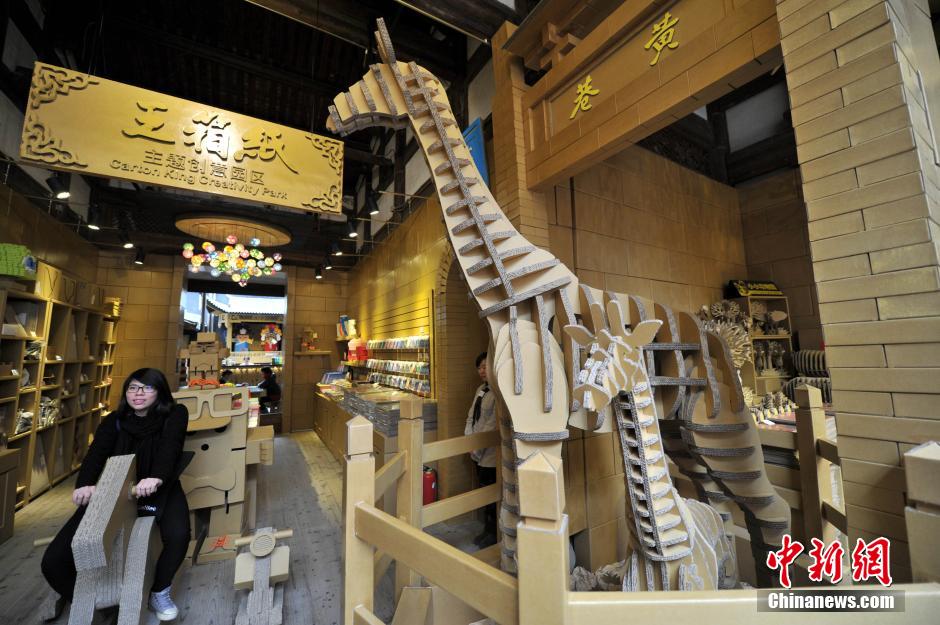 12月23日,福建首家台湾纸箱王创意园落户福州三坊七巷,创意园里结合了福州三坊七巷各个景点,打造一个梦幻的纸世界。吕明 摄