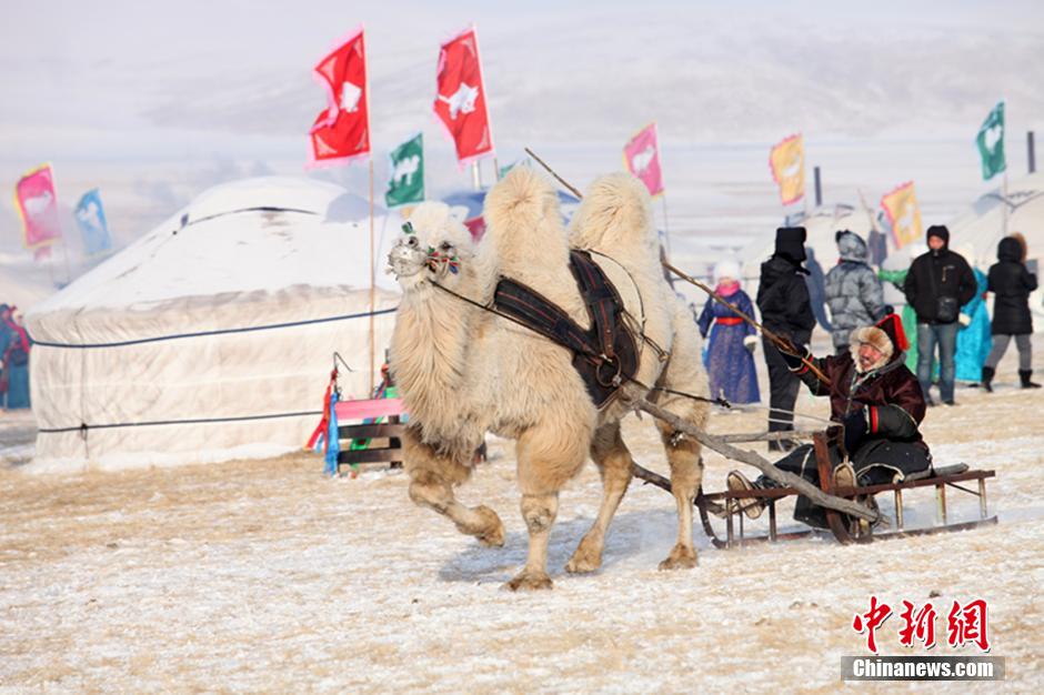 23日,“内蒙古第十四届冰雪那达慕暨巴尔虎草原祭火文化节”在内蒙古呼伦贝尔草原上的陈巴尔虎旗开幕。据了解,本届冬季冰雪那达慕将冬季的冰雪与独特的民俗风情巧妙地结合在一起,其形式主要由祭祀仪式、实景表演、歌舞演出、传统体育竞技等组成。在体育竞技方面,冬季那达慕设赛马、摔跤、射箭、赛骆驼、骆驼爬犁、赛马爬犁等具有浓郁特色的民族传统体育项目比赛。图为身着蒙古袍、驾驼车“赶场”的牧民。芒来 摄