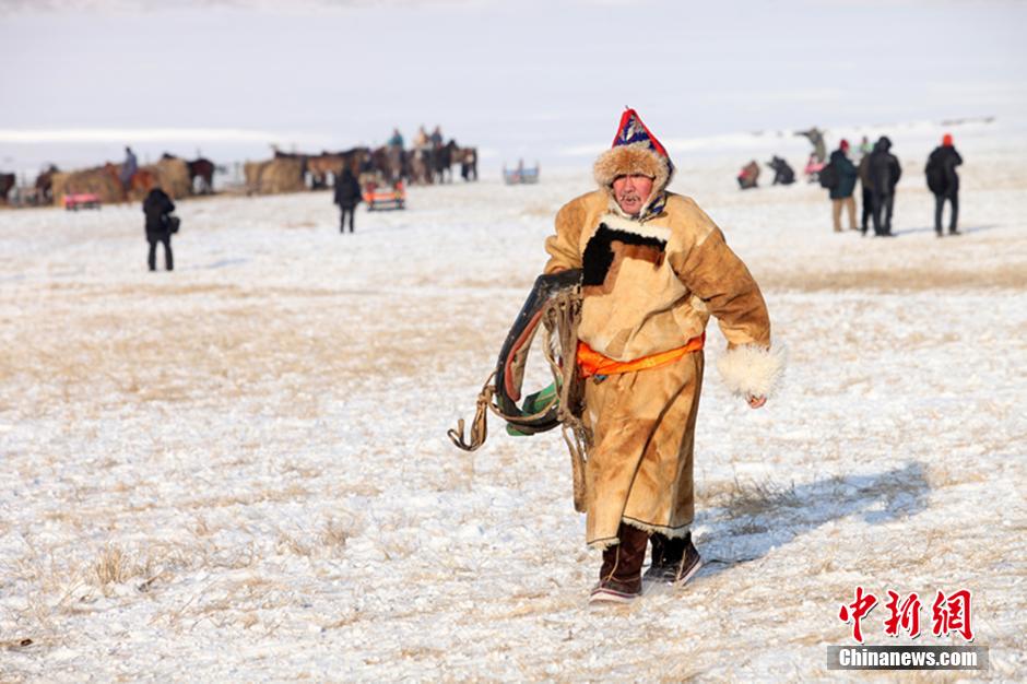 23日,“内蒙古第十四届冰雪那达慕暨巴尔虎草原祭火文化节”在内蒙古呼伦贝尔草原上的陈巴尔虎旗开幕。图为在开幕式上,身着蒙古袍的牧民。芒来 摄