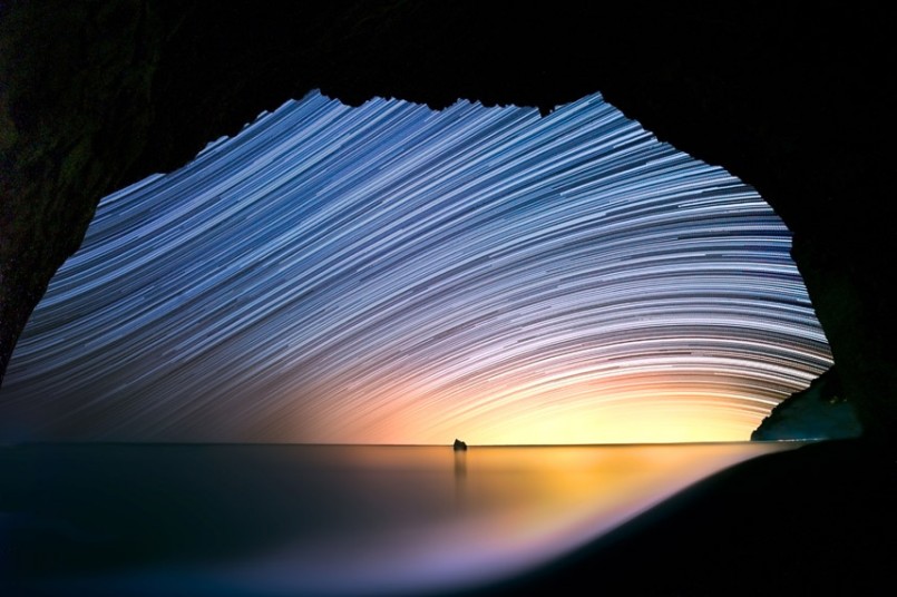 英国《每日电讯报》报道,在亚得里亚海海岸,46岁的意大利摄影师马里兹奥·皮格诺蒂冒着严寒拍摄了一组精彩的长曝光摄影作品,展现点点星 辰在水晶般清澈的夜空中形成的绚美夺目的漩涡状轨迹。