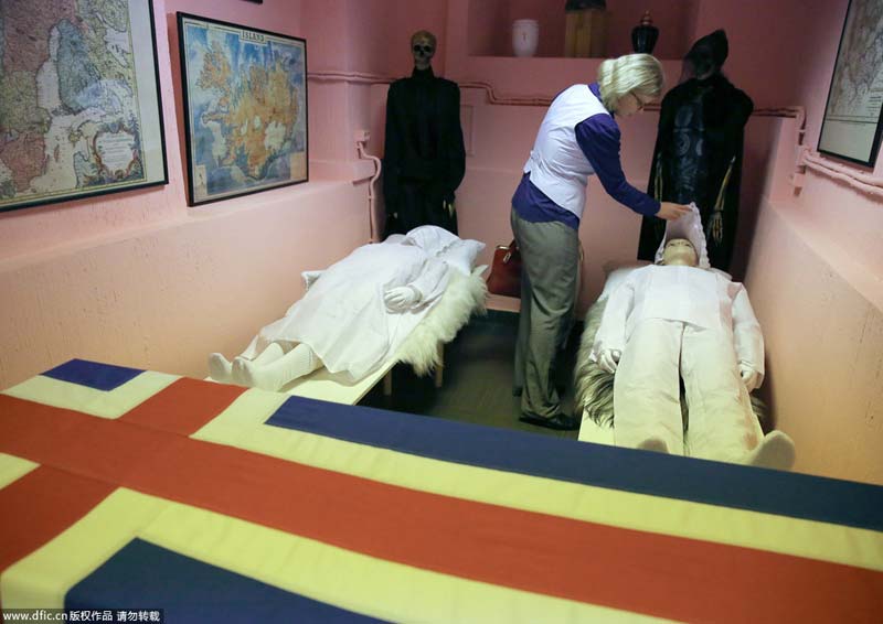 当地时间2013年12月21日,俄罗斯圣彼得堡,一名女参观者在涅夫斯基大街上的死亡博物馆里。