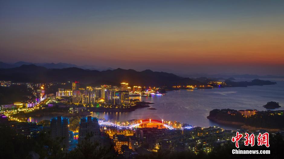 美丽千岛湖新十景之夜岛星河。展现了千岛湖这座滨湖山城所透射出的城市旅游新魅力。中新社发 程海波 摄