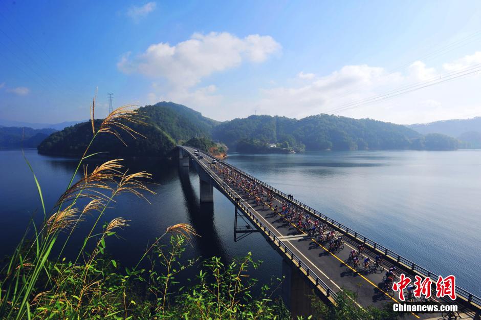 美丽千岛湖新十景之绿道传骑。代表了千岛湖休闲度假游最具特色的项目之一——环湖骑行。中新社发 胡长胜 摄