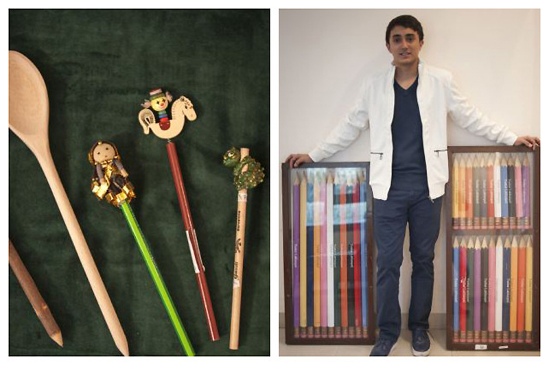 有人喜欢收集邮票,有人喜欢收集硬币或是钥匙圈,但是印度一名疯狂的文具迷却喜欢收集不同种类的铅笔,收藏量居全球第一,直逼吉尼斯世界记录。据英国《每日邮报》1月5日报道,来自印度首都新德里的15岁男孩图沙尔?拉肯帕尔(Tushar Lakhanpal)4岁就开始收藏铅笔,现已有来自40多个国家超过1.4万根各式各样的铅笔。