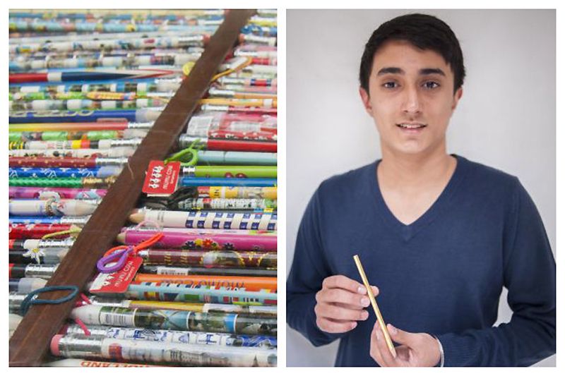 有人喜欢收集邮票,有人喜欢收集硬币或是钥匙圈,但是印度一名疯狂的文具迷却喜欢收集不同种类的铅笔,收藏量居全球第一,直逼吉尼斯世界记录。据英国《每日邮报》1月5日报道,来自印度首都新德里的15岁男孩图沙尔?拉肯帕尔(Tushar Lakhanpal)4岁就开始收藏铅笔,现已有来自40多个国家超过1.4万根各式各样的铅笔。