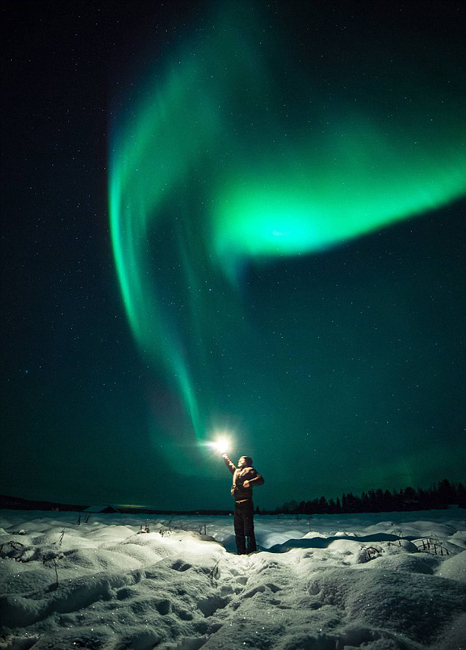 此时,北极部分地区正值欣赏奇妙极光的时候。极光的美丽通常会吸引众多摄影爱好者的目光。但是,英国《每日邮报》1月19日向人们展示了一张颇具魔力与喜感的极光照片。照片中的男子高举手臂,手握一个闪闪发光的球体。更为神奇的是,极光刚好在球体后的天幕中“舞动”开来。整个照片活像电影《哈利波特》中的场景。