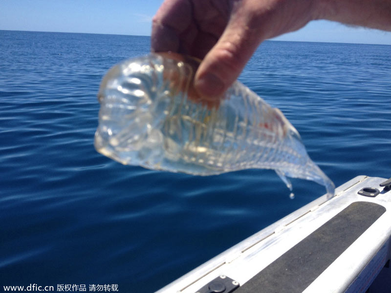 2014年1月22日报道,来自新西兰的钓鱼爱好者Stewart Fraser在卡里卡里半岛钓鱼时,捕到一只透明的虾,惊讶不已。