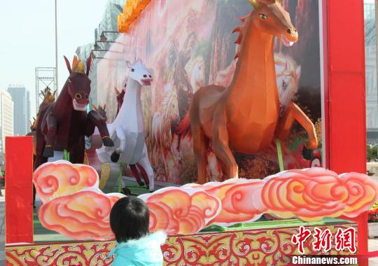 兰州东方红广场的马年元素图案。 张玉玺 摄