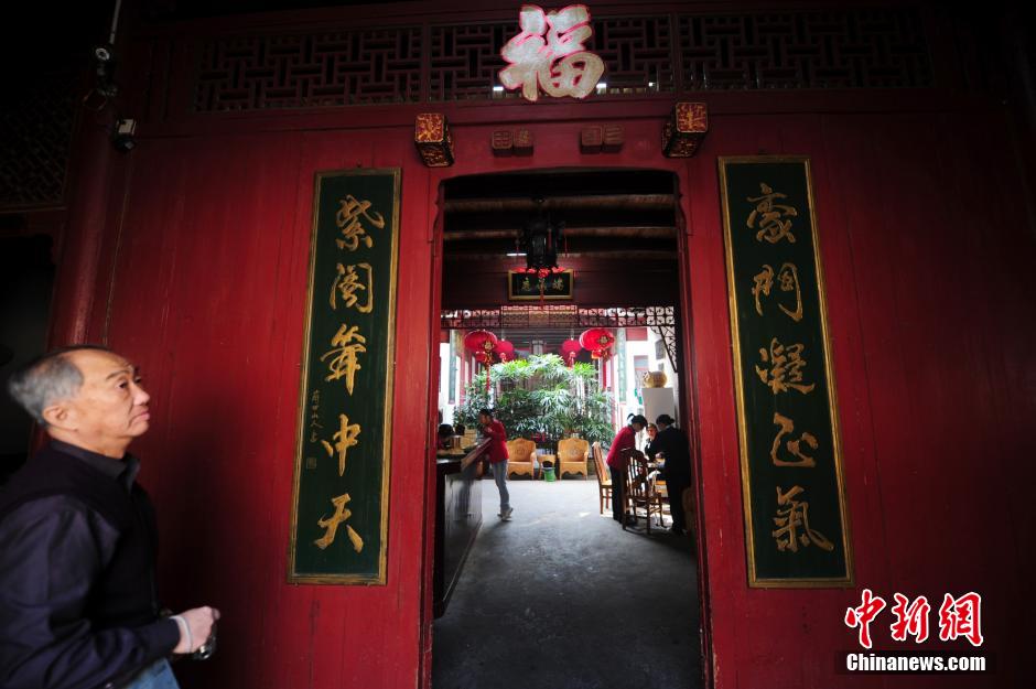 古城墙、古浮桥、古石窟、郁孤台、八镜台、灶儿巷等名胜是江西赣州这座历史文化名城留给后人璀璨的文化遗产。马年春节,中新社记者走进赣州探访,用镜头聚焦古城。图为赣州灶儿巷董府。中新社发 陈文 摄