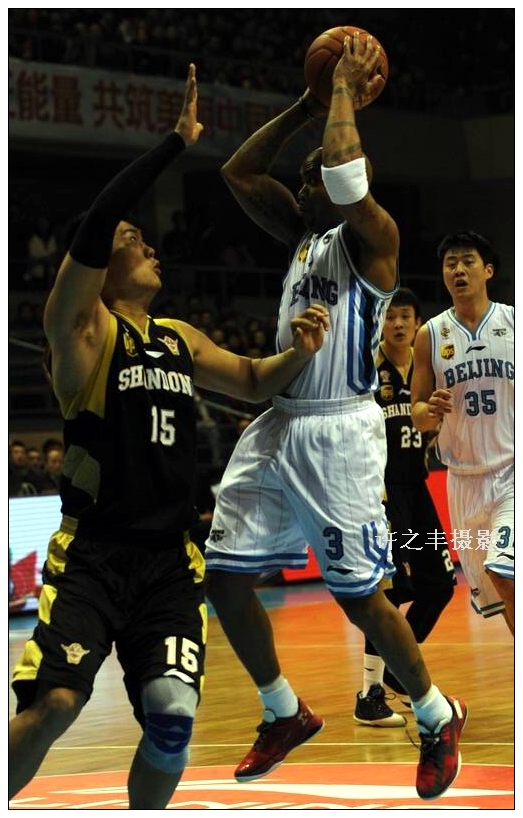 2014年2月5日晚,CBA联赛第29轮,主场作战的北京队以99比95击败山东队,结束了近年来对山东队的五连败。阔别赛场73天的马布里复出首战得到9分7助攻,但却在第三节末段被裁判判双方违体犯规,马布里被判肘击对手被罚下场。本场比赛,北京队李根26分,莫里斯22分10篮板,吉喆20分10篮板3助攻,马布里9分7助攻,孙悦9分6助攻3抢断。山东队杰特31分8篮板4抢断4助攻,丁彦雨航27分5篮板,哈维14分10篮板3助攻。工人日报-中工网记者许之丰摄影报道