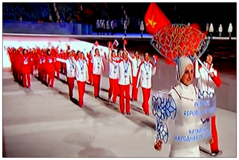 2014年2月8日,第22届冬季奥运会开幕式在俄罗斯索契的菲施特奥林匹克体育场举行。开幕式运动员出场是按照俄语字母顺序,中国代表团将在第38位出场,旗手是花滑名将佟健。工人日报-中工网记者许之丰荧屏摄影报道