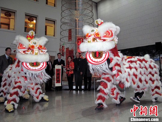 当地时间2月7日下午,中国农历正月初八,美国加州旧金山州府大厦内,华裔州参议员余胤良连同其他政府官员、华人社区组织和人士举办马年新春庆祝活动, 这是州府大厦内连续10余年举办此活动。中新社发 刘丹 摄
