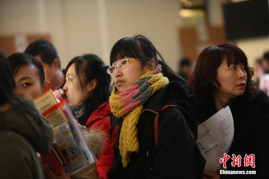 2月8日,在山东省青岛市2014年普通高校招生省外院校艺术类专业测试报名现场,美女帅哥云集。今年有80多所省外高校在青岛设点进行专业测试,比去年翻了一番多,创下了近五年来高校设点测试数量之最。艺术类包含了美术类、书法类、摄影类、音乐类、舞蹈类、播音主持类、戏剧表演类、服装表演类、文学编导类等。中新社发 徐崇德 摄