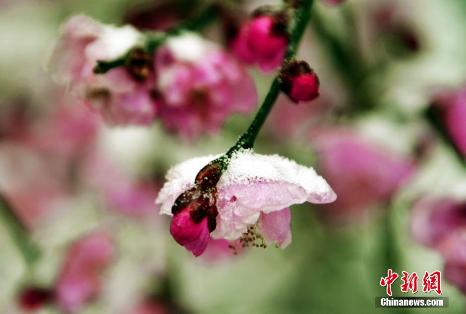 2月9日,春雪过后的湖南张家界武陵源风景名胜区银装素裹。冬春之交,寒气还未褪去,张家界国家森林公园黄石寨梅园千株早梅陆续绽放。一朵朵粉红色、黄色、白色的梅花跃然枝头,被白雪点缀,娇艳欲滴,吸引不少中外游客踏雪寻梅。吴勇兵 摄