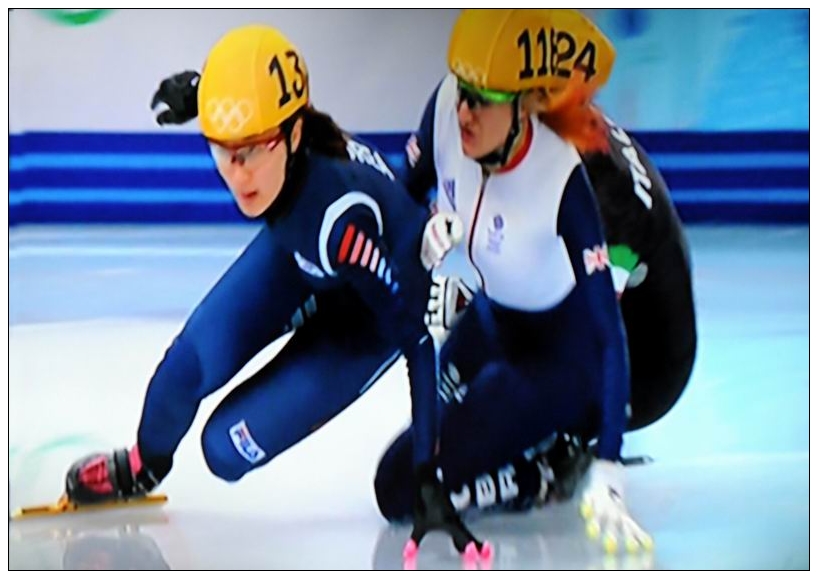 2014年2月13日,索契冬奥会短道速滑女子500米决赛,中国选手李坚柔以45秒263的成绩率先冲线,夺得了中国队在本届冬奥会的首枚金牌。女子500米决赛的四名选手按照道次排列依次为:韩国选手朴升智、意大利选手方塔娜、英国选手克里斯蒂和中国选手李坚柔。比赛进入到第二圈弯道处,克里斯蒂内道强行超越方塔娜,使得前三名的选手全部摔出赛道,处在最后的李坚柔则成为唯一一名站住继续滑的选手,最后以45秒263的成绩率先冲线夺得金牌。成为本届冬奥会的首枚金牌。工人日报-中工网记者许之丰荧屏摄影报道