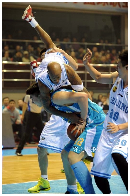 2014年2月14日晚,CBA篮球联赛常规赛第33轮,北京金隅主场迎战福建队。北京金隅队以109比104战胜福建队,也实现了对对手的双杀。图一马布里在王哲林身上“人仰马翻”。北京金隅队马布里25分7篮板,孙悦22分5助攻4盖帽,莫里斯21分10篮板,朱彦西14分6篮板;福建队王哲林28分15篮板,韦斯特23分17篮板,麦克唐纳22分7篮板,巴赫拉米13分7篮板,赵泰隆12分。工人日报-中工网记者许之丰摄影报道