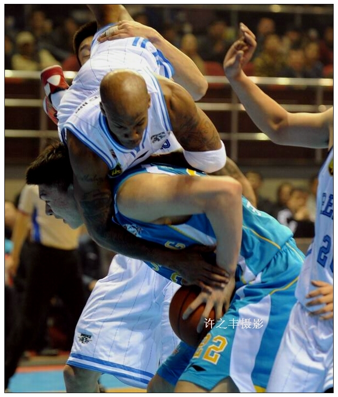 2014年2月14日晚,CBA篮球联赛常规赛第33轮,北京金隅主场迎战福建队。北京金隅队以109比104战胜福建队,也实现了对对手的双杀。图一马布里在王哲林身上“人仰马翻”。北京金隅队马布里25分7篮板,孙悦22分5助攻4盖帽,莫里斯21分10篮板,朱彦西14分6篮板;福建队王哲林28分15篮板,韦斯特23分17篮板,麦克唐纳22分7篮板,巴赫拉米13分7篮板,赵泰隆12分。工人日报-中工网记者许之丰摄影报道