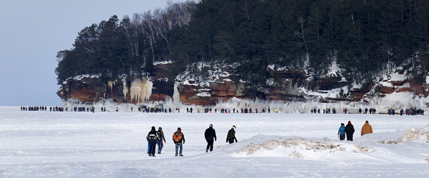 美严寒致湖岸洞穴变绝美冰雕世界