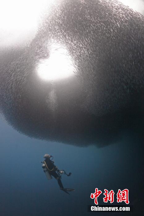 沙丁鱼群组成浪漫心形场面温馨壮观