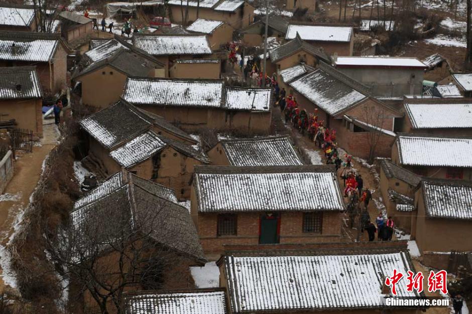 甘肃清水村民穿官袍画脸谱上演民间“转马”社火