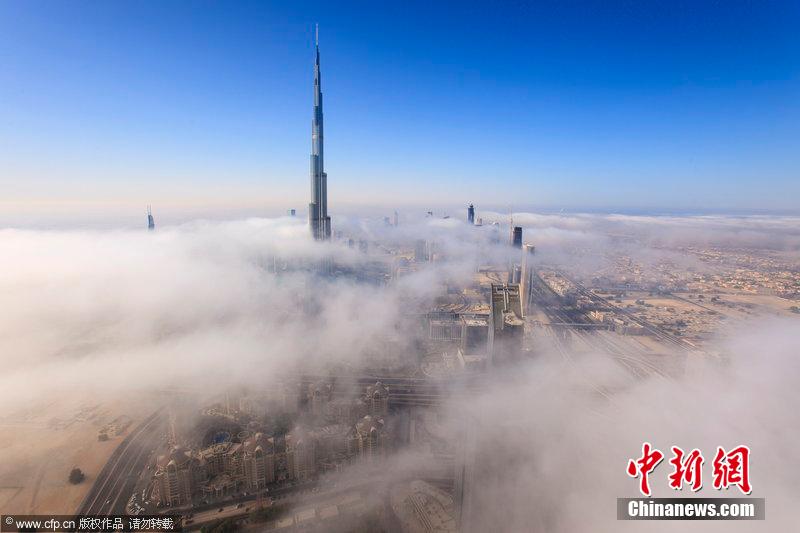 浓雾笼罩迪拜 世界最高塔“傲视”天下
