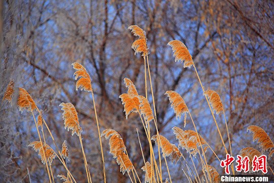 2月中旬,新疆北部哈巴河县依然寒冷,最低气温达零下30摄氏度。低温天气让当地的芦苇花被一层银色冰霜包裹,呈现出金银相融的美丽画面。中新社发 刘是何 摄