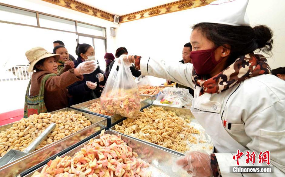 卡赛是一种油炸面食,是藏族人家款待客人的点心,也是藏历新年必备的年货之一。随着3月上旬藏历木马年的日益临近,古城拉萨卡赛生意日渐红火。图为随着藏历木马新年邻近,卡赛持续热销。李林 摄
