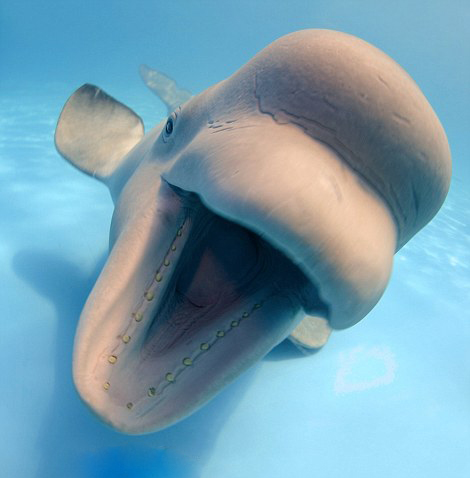 乌克兰白鲸逗弄潜水员卖萌欲上镜