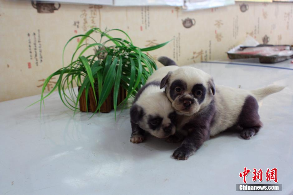 新生小狗酷似熊猫 萌翻众人