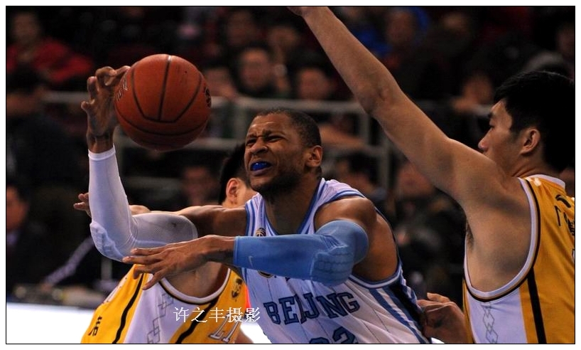 2014年2月21日晚,在北京五棵松体育馆,CBA篮球季后赛四分之一决赛第二场,北京金隅队主场以121比104战胜广厦队,将大比分扳成1比1平。本场比赛,北京队莫里斯41分7篮板,马布里20分3助攻3抢断,孙悦13分6篮板6助攻,吉喆12分9篮板5助攻,翟晓川11分8篮板,朱彦西10分。广厦队吉布森36分4助攻4抢断,约翰逊21分15篮板,王征13分14篮板。工人日报-中工网记者许之丰摄影报道
