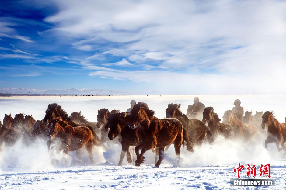 新疆伊犁天山脚下现万马奔腾 场面壮观