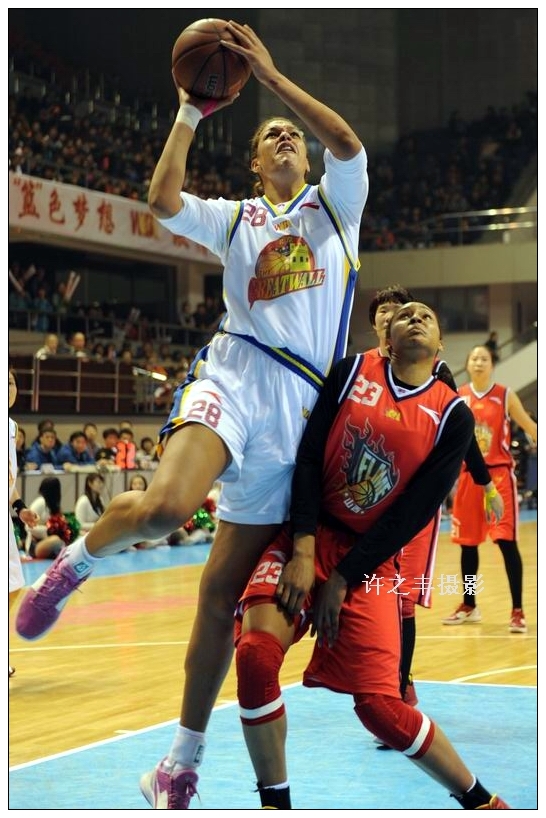 2014年2月28日晚,WCBA总决赛第二场北京主场。两队经过四节鏖战,山西队艰难的以97比90在客场战胜北京队。山西队的外援玛雅摩尔全场拿到49分,北京队的外援坎贝奇38分。工人日报-中工网记者许之丰摄影报道