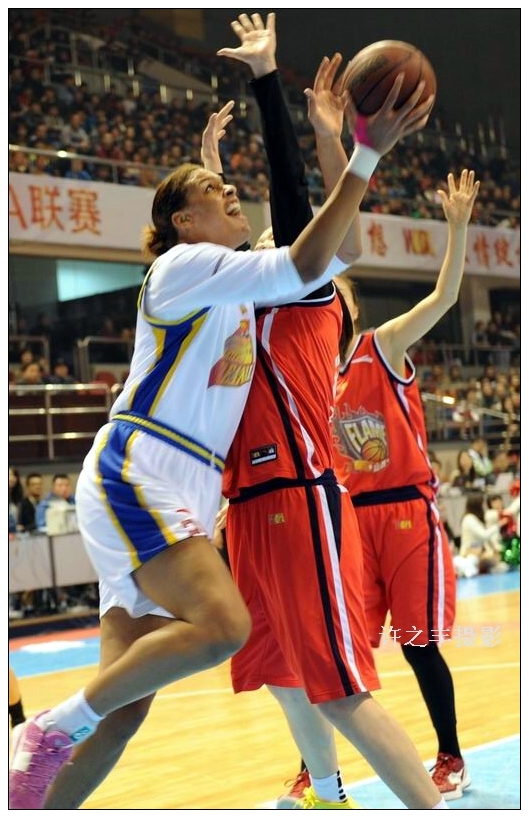 2014年2月28日晚,WCBA总决赛第二场北京主场。两队经过四节鏖战,山西队艰难的以97比90在客场战胜北京队。山西队的外援玛雅摩尔全场拿到49分,北京队的外援坎贝奇38分。工人日报-中工网记者许之丰摄影报道